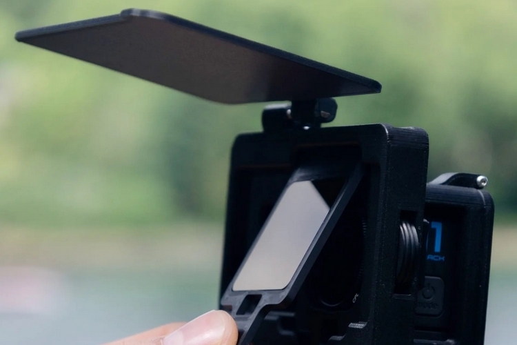 The Dragonfly Action Box Cine is, basically, a matte box sized to hold a GoPro, with a built-in shade that you can deploy to block out light glare. An integrated screw clamp makes it easy to lock the shade at any desired angle, making it easy to preserve the scene’s contrast and clarity, no matter the ambient lighting situation. Aside from serving as a matte box, the accessory also has a circular polarizer right in line with the GoPro’s lens, allowing you to adjust polarization to further minimize glare using a control wheel on the side.