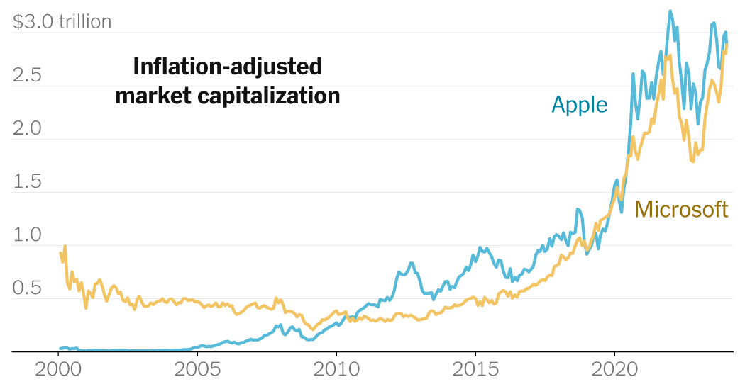 On Friday, Microsoft surpassed Apple, claiming the crown after its market value surged by more than $1 trillion over the past year. Microsoft finished the day at $2.89 trillion, higher than Apple’s $2.87 trillion, according to Bloomberg.