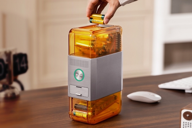The charging area is situated on top and uses an automated design that requires you to simply drop in your battery (any AA and AAA will work) into the opening, with the device handling the rest. First, it detects the size, type, and polarity of the battery you put in, while also testing it for defects (e.g. too old, leaking, damaged). Only batteries it deems healthy are charged, with the bad ones going to a chute you can access out front, so you can pick them up and throw them away later. Do note, it only charges four batteries at a time, regardless of how many you actually put in the charging area, with a batch taking between two and four hours to fully replenish.