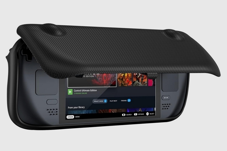 If you prefer the feel of silicone over TPU, you might find this Steam Deck case a lot more to your liking. Due to its all-silicone build, the case provides a soft, flexible texture with a satisfying grip. It’s also incredibly easy to put on and take off, since you can stretch it freely without worrying about causing any damage. The silicone is thick enough to offer adequate protection from nicks and scratches, although it does leave the handheld a tad too thick to fit in the official dock. It does stay slim enough to fit in the official carrying case, though, if you own that. We love the enlarged cutout on the USB-C slot, which should allow it to accommodate all sorts of cables and dongles, along with the bundles thumb grips that you can put on the thumb sticks for more precise control.